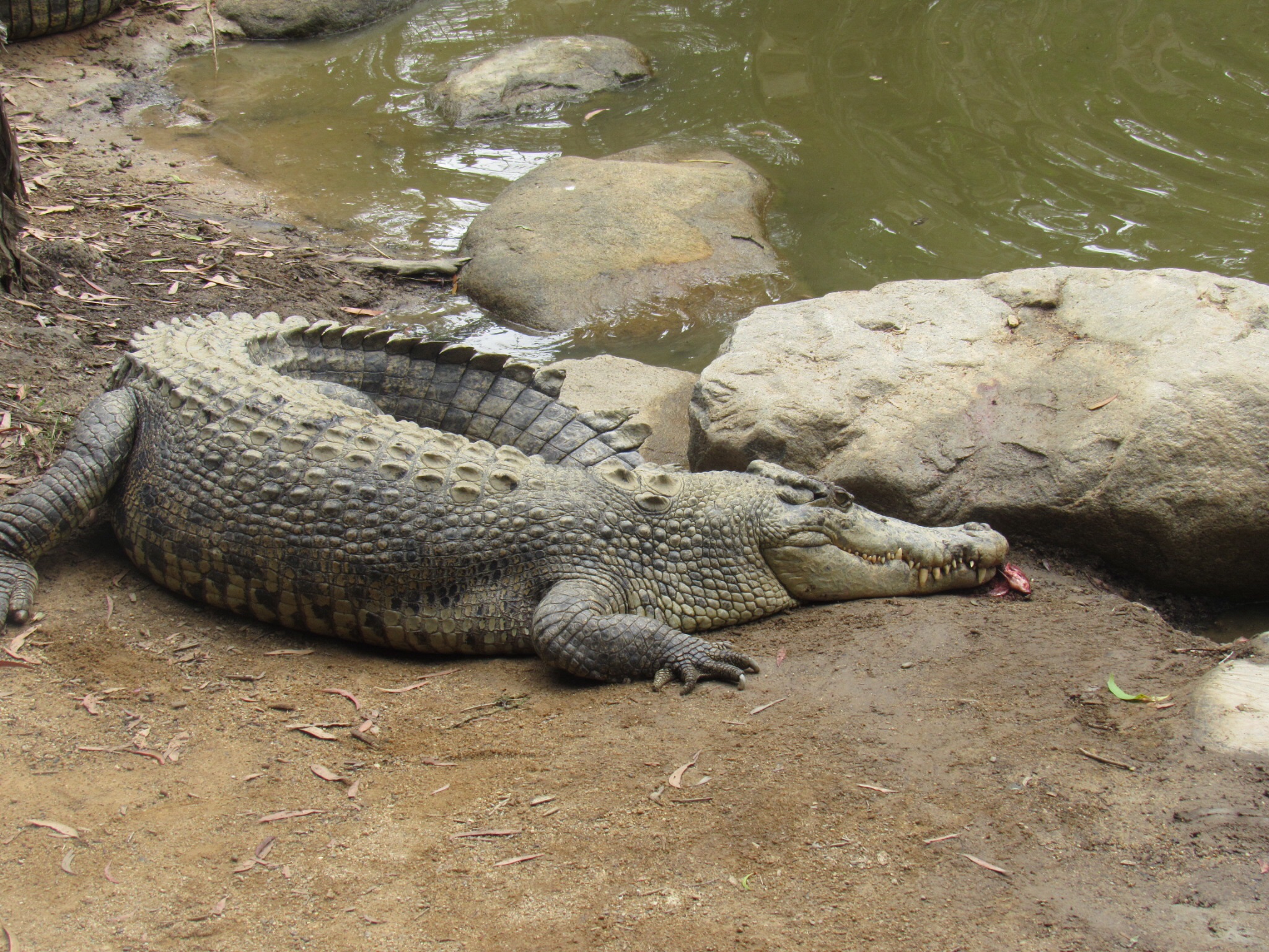 This is what a crocodile farm looks like. These are hundreds of 2 year old males. They will be ready for “harvesting” in another year! Presumably male, as the sex is determined by the temperature at incubation. They are farmed for their skin and meat.