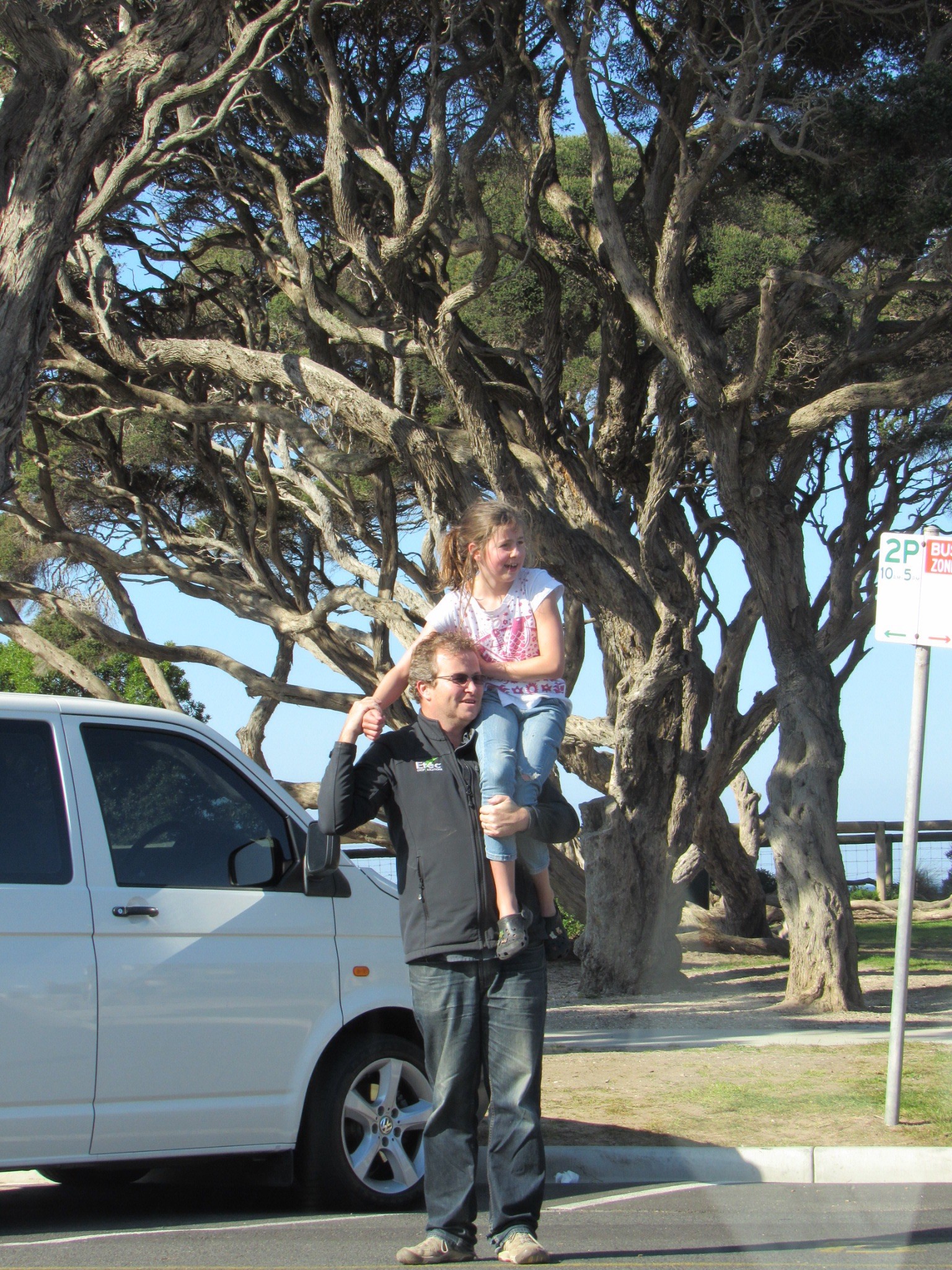 Daniel spies a kookaburra. In fact two perched above our picnic table, one of which one swiped Tadhg’s sausage and made off with it!