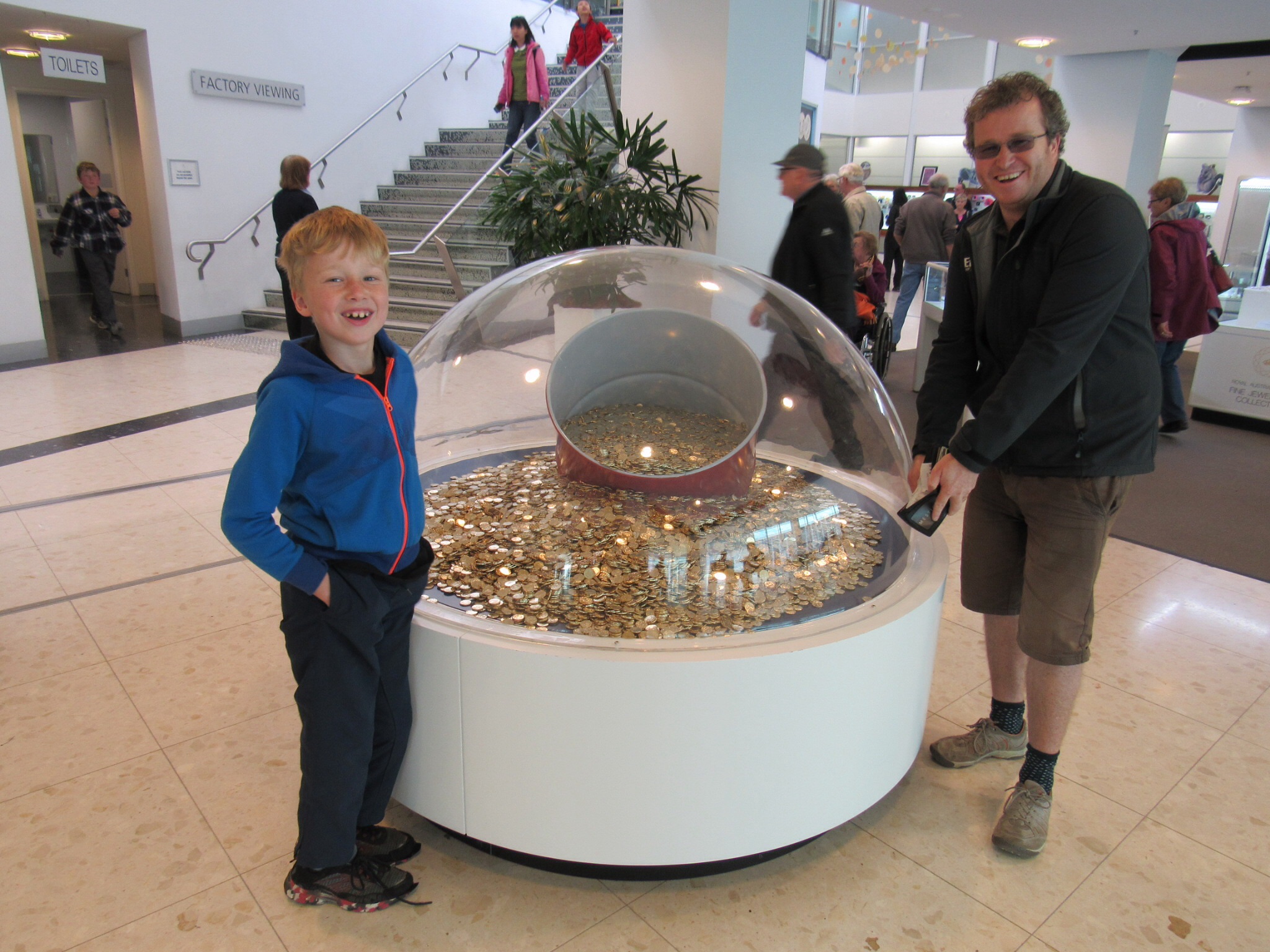 3. Royal Australian Mint which is a factory where they make Australian coins/money. There was a computer game where you had to put the old money over to pretend to buy things in the 1960s, which kept Ilona and Tadhg busy (their maths lesson for the day!). They had pounds, shillings and pence then, not the Australian Dollar and Cents. The Australian two dollar coin is smaller than the one dollar coin, and nobody could tell us why. Even though the mint is a factory, there was no free sample of what they produce on the way out!