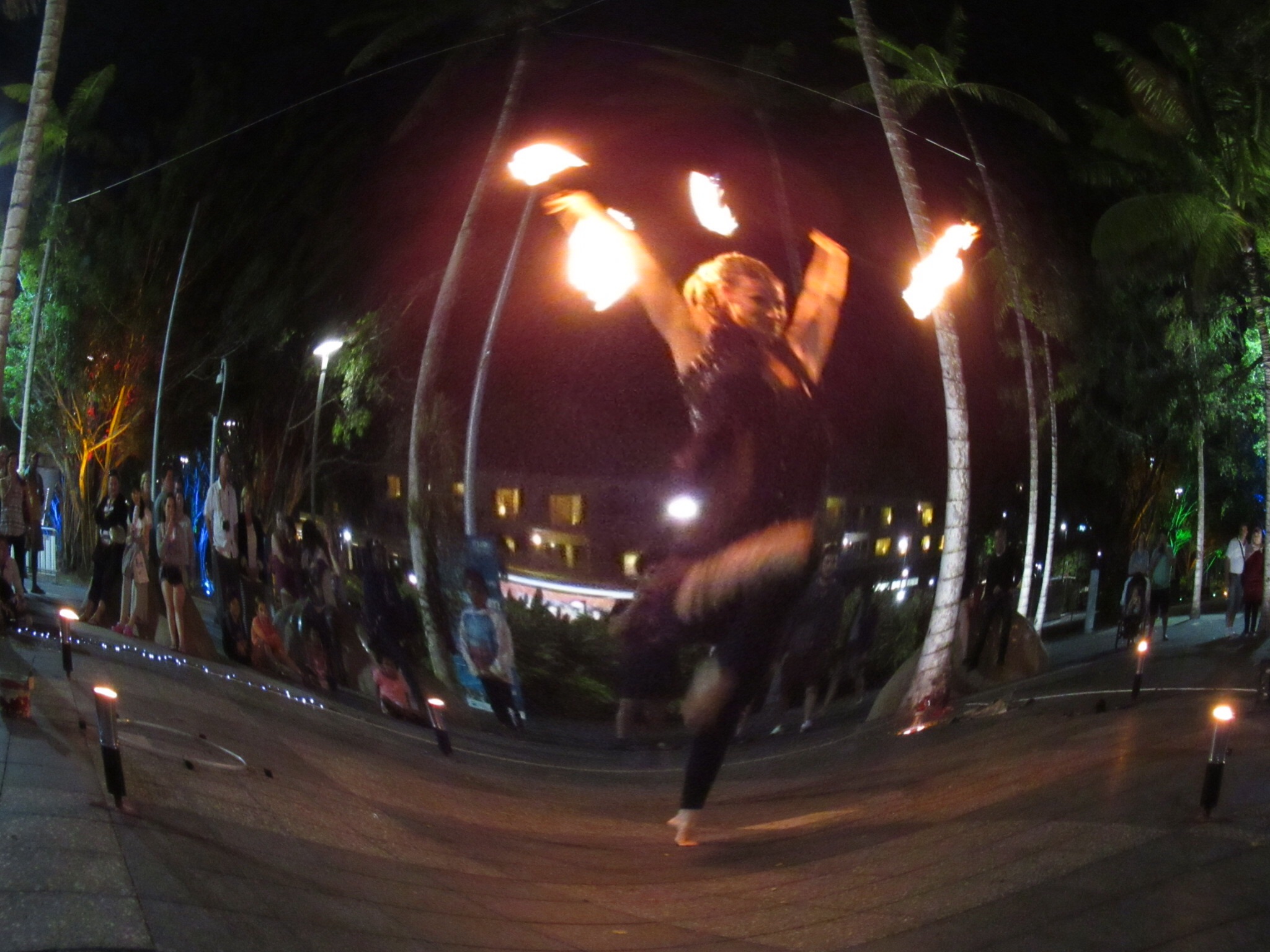 Day 1: sampled fabulous food in both the daytime fresh produce markets and the (famous) night-time Cairns market, which was bustling, with fire eaters, buskers, street miners, street statues (who became Elvis when money dropped in their hat).