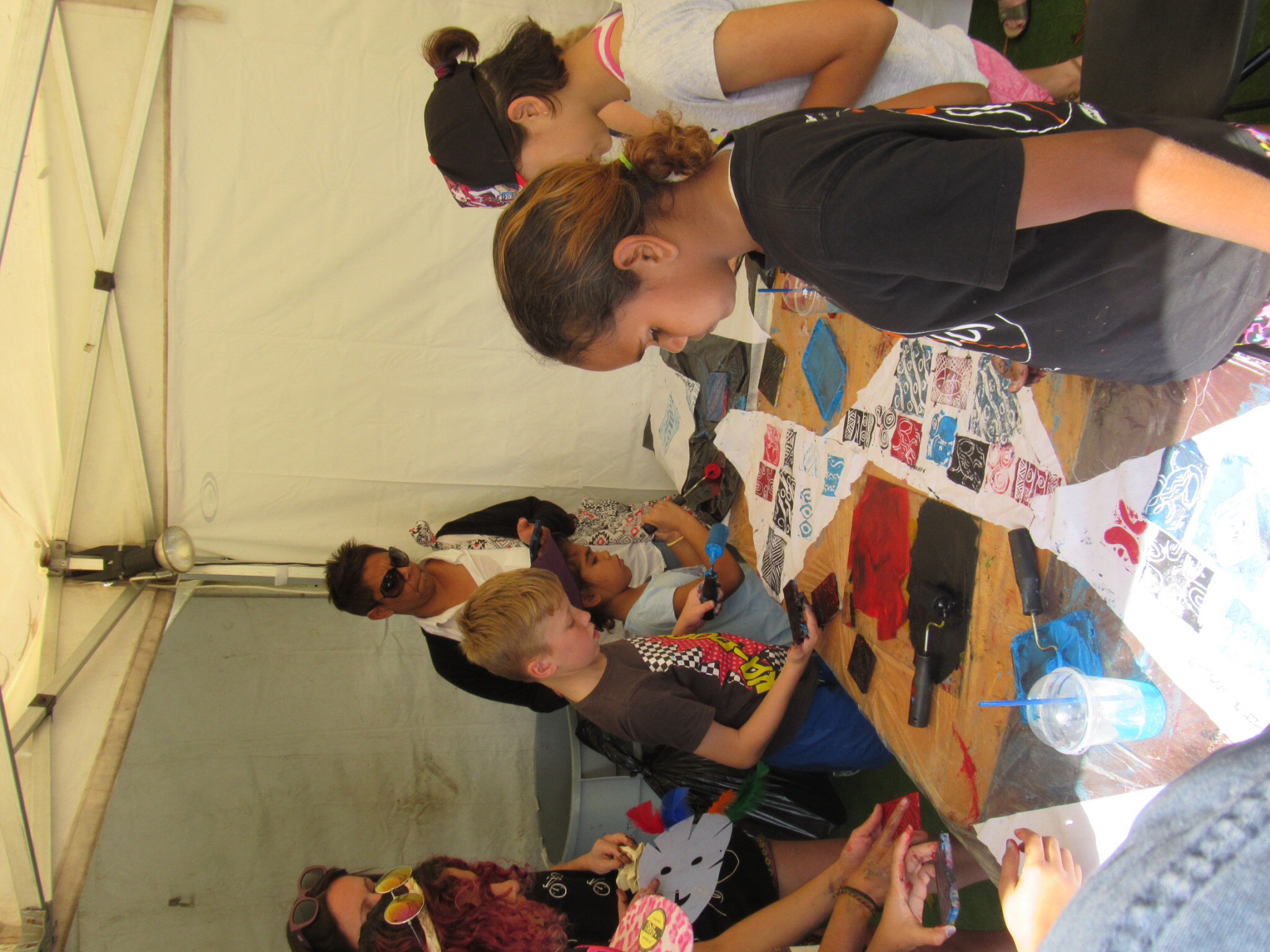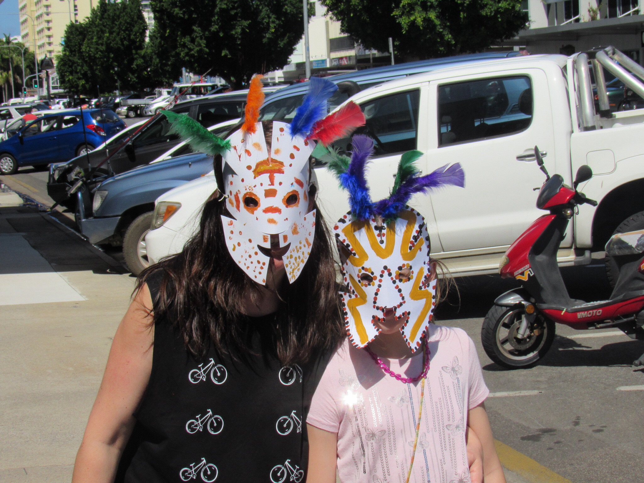 Day 2: morning spent at the Aboriginal Arts Festival. Ilona and Tadhg thoroughly enjoyed the kids art tables, where they sampled making indigenous designed masks and bandanas.